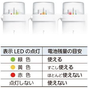 ●3色のLEDで電池残量も表示可能。