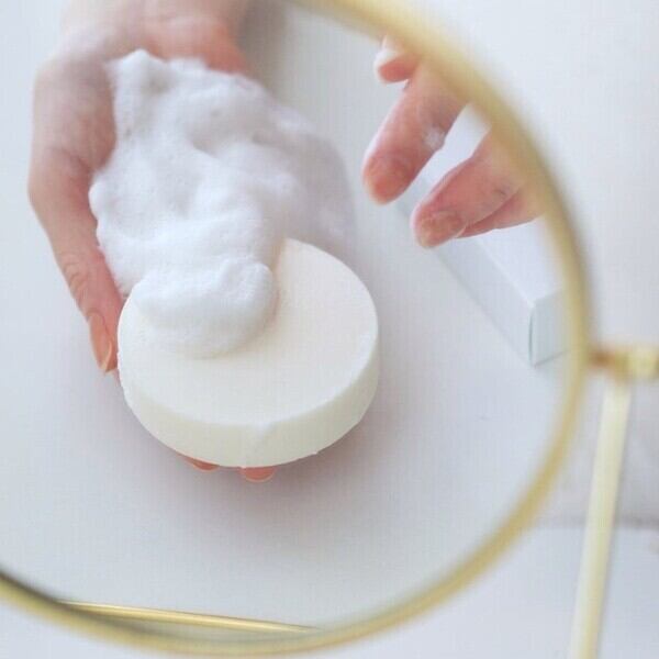 高密度の塩石けんは、もっちりとした泡が特徴的。