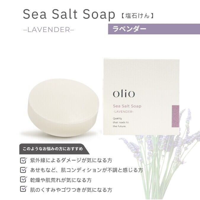 お試し商品:塩石けん ラベンダー Sea Salt Soap LAVENDER(1/8カット簡易ネット付き)/シーソルトソープ 無添加