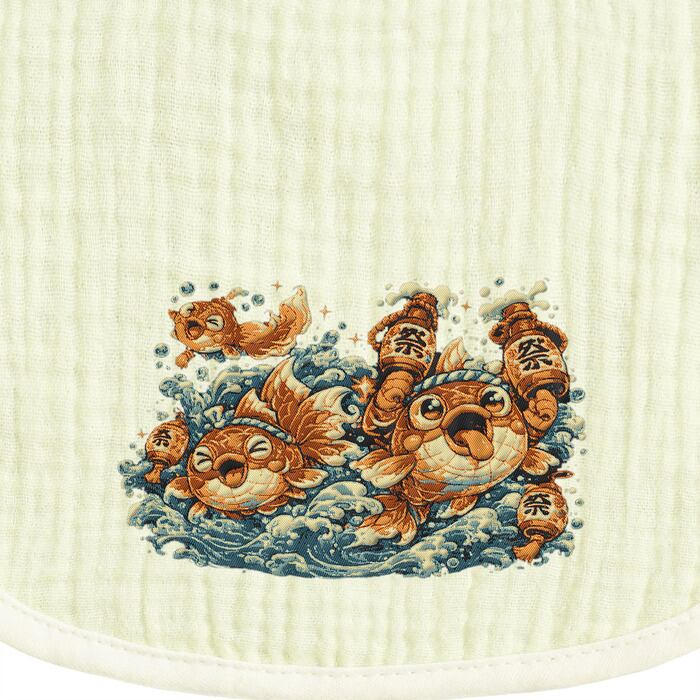 金魚ねぶた風でやわらかい手触りのガーゼスタイ。