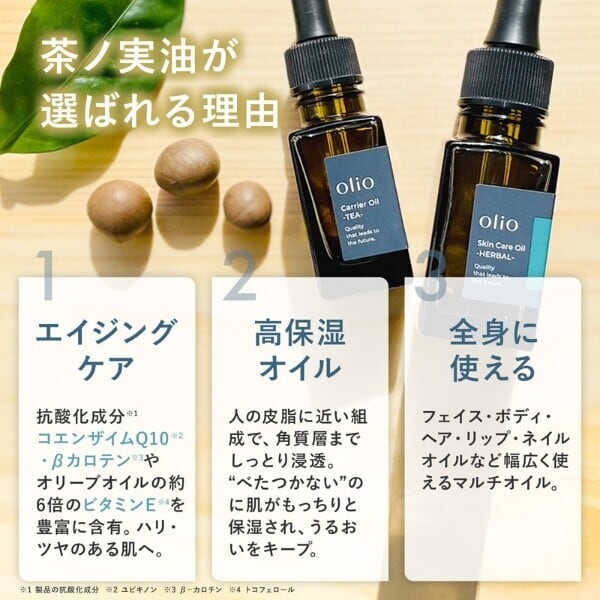 静岡県産のお茶の実から採れた、茶ノ実油(TEA SEED OIL)。 保湿性が高く、肌なじみのよい美容オイルです。 ボディ・フェイス・リップ・ヘアケアと幅広く全身にお使いいただけます。